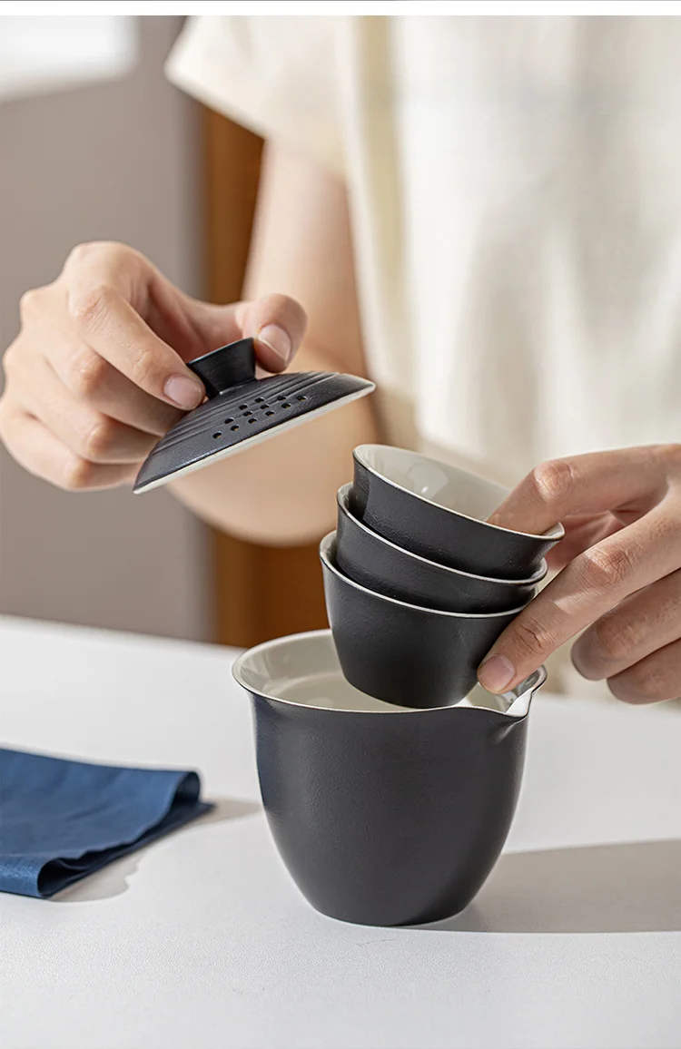 1 Set Portable Teacup Set Travel Kit Ceramic Kung Fu Teaware Ceramic Outdoor Cam