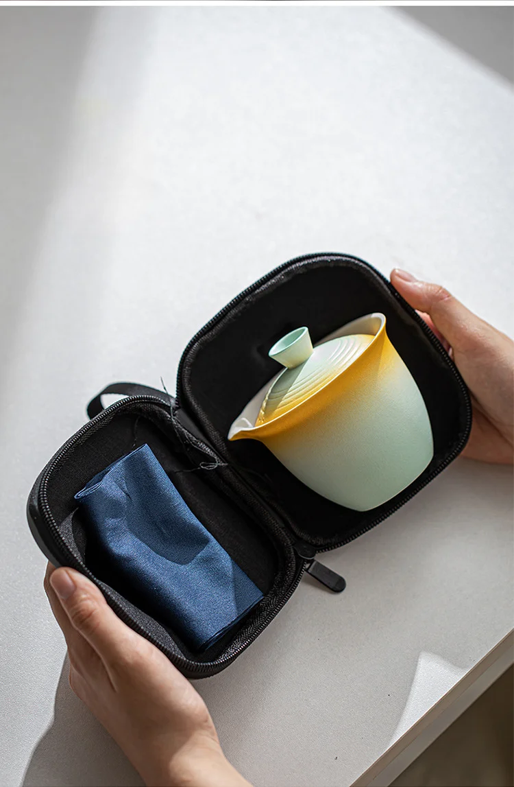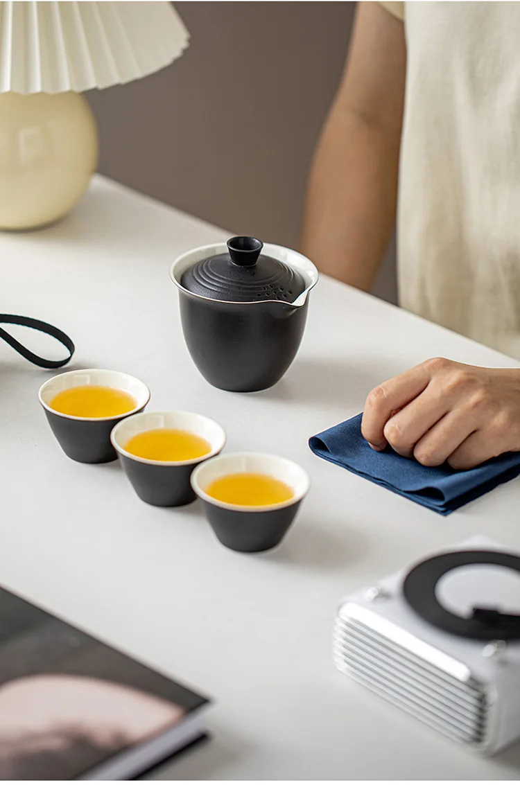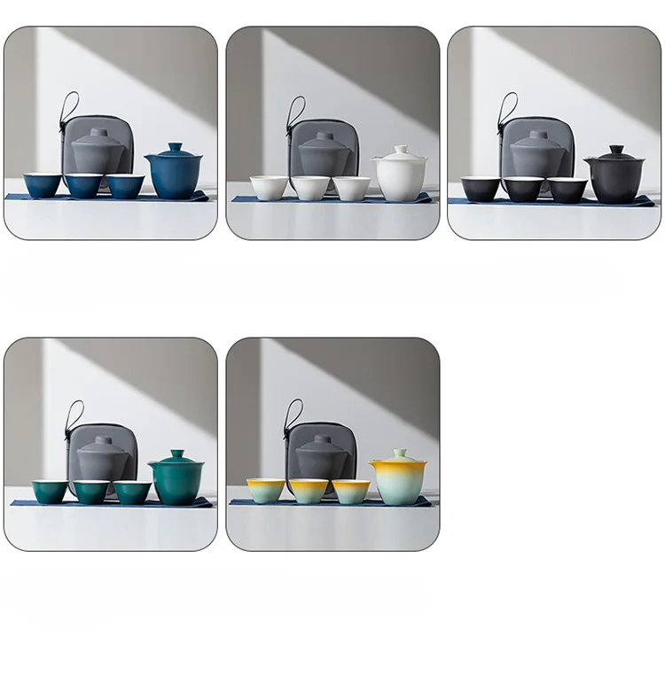 1 Set Portable Teacup Set Travel Kit Ceramic Kung Fu Teaware Ceramic Outdoor Camping Adults Chinese One Tea Pot Three Cups GiftDescription