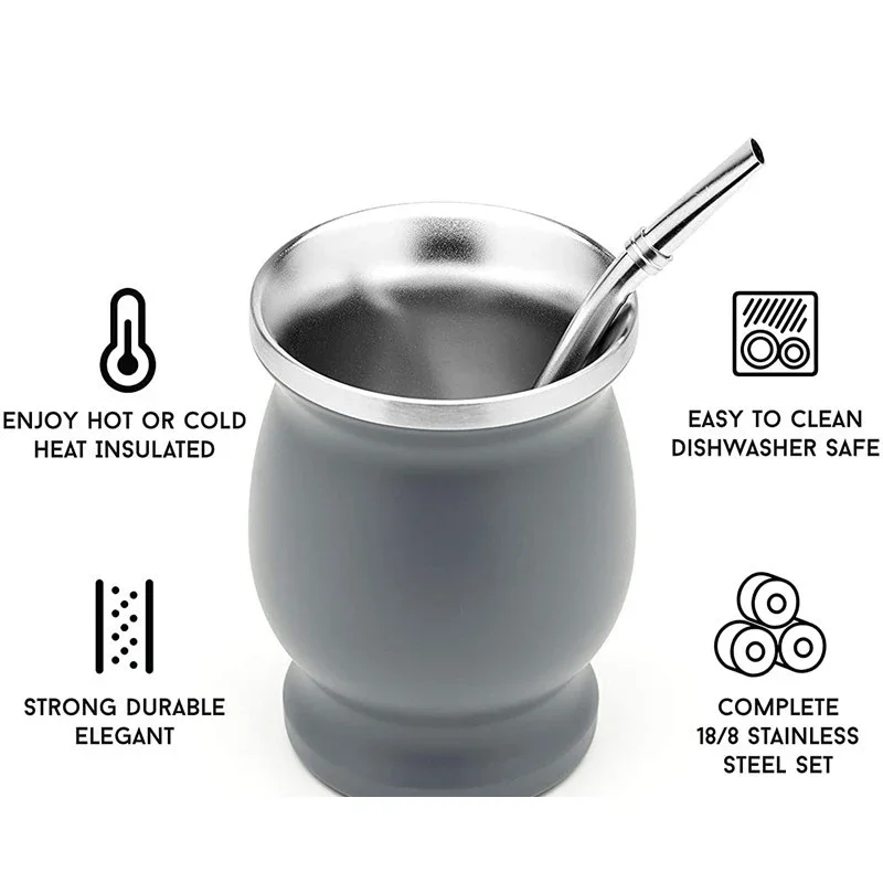230ML Stainless Steel Mate Tea Cup Tea Cup Set for Argentina Insulated Straw Cup