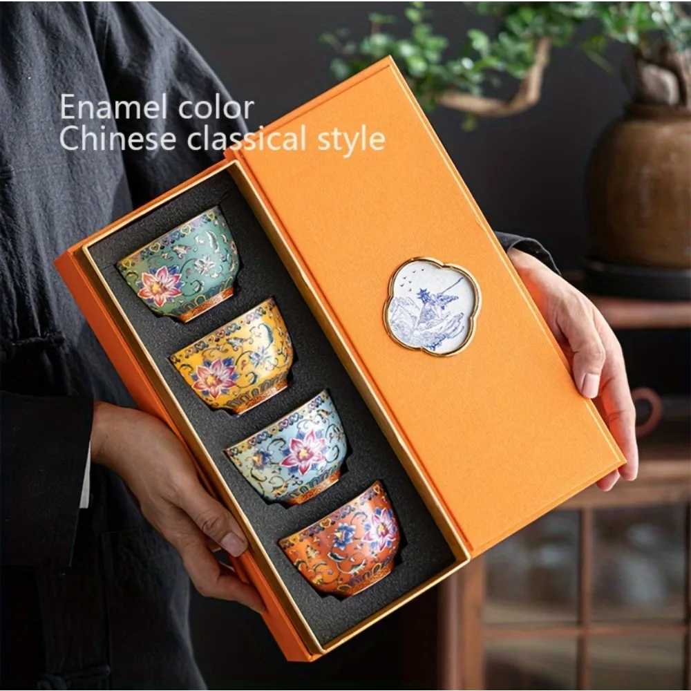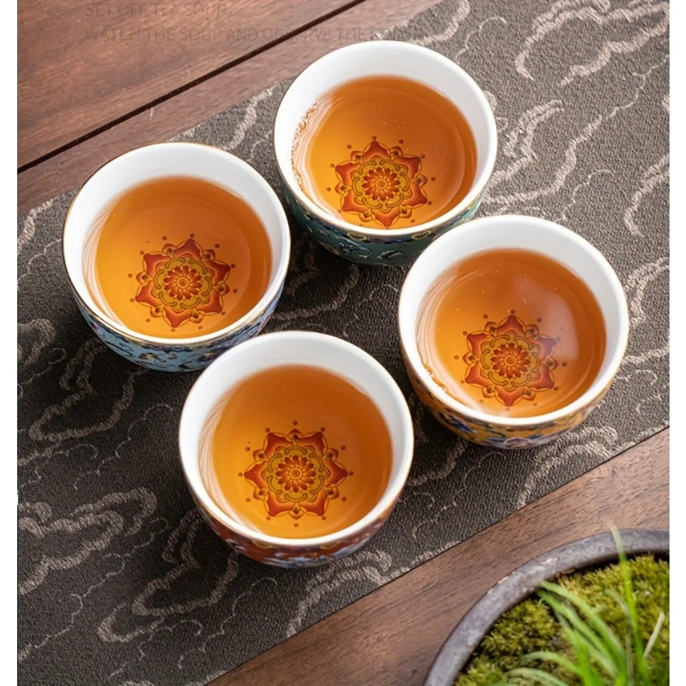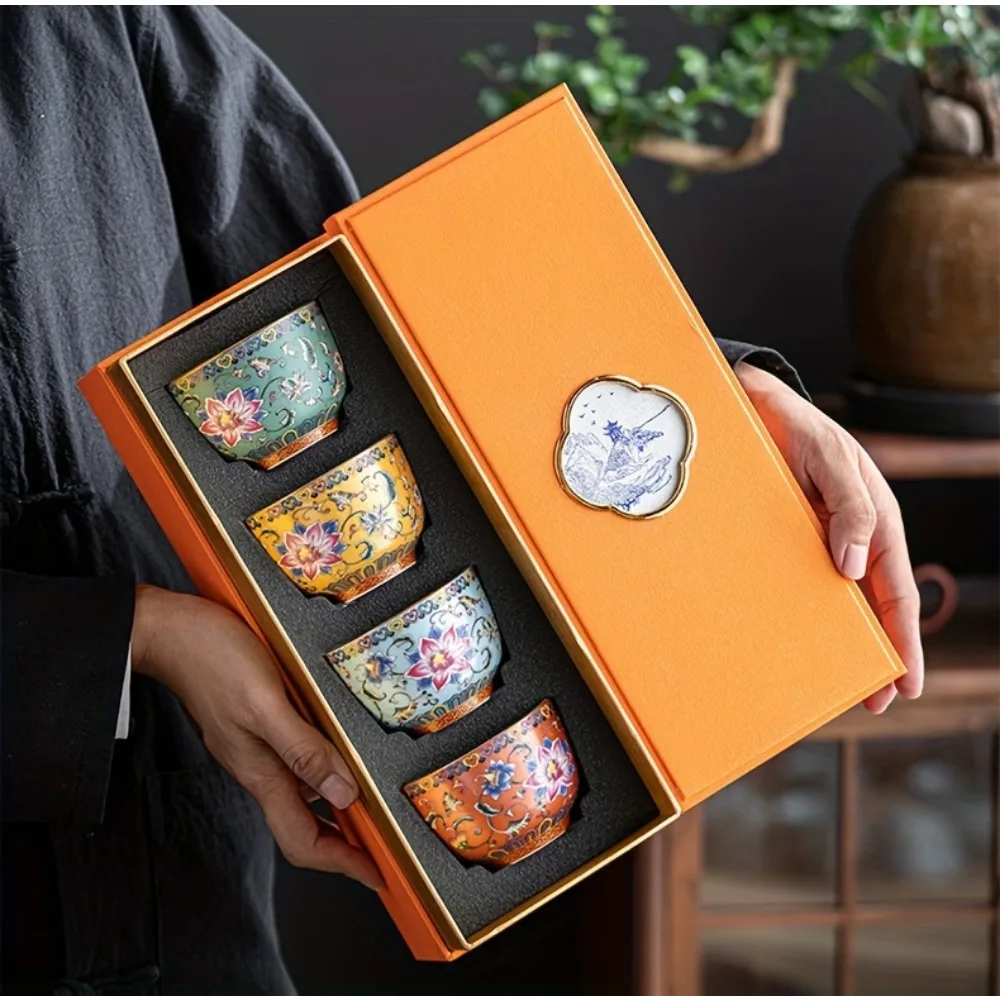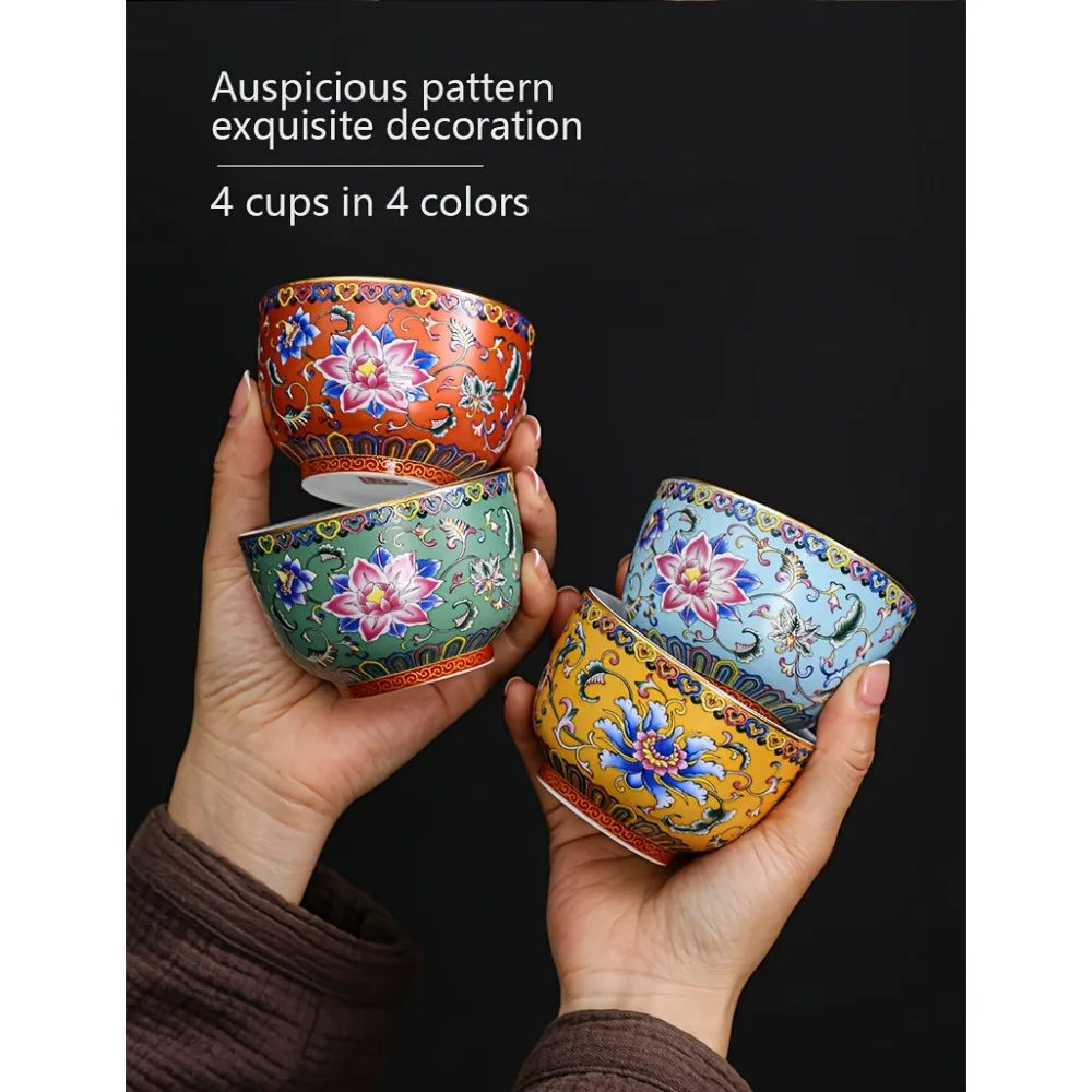 4pcs/set Chinese Antique Style Teacups Ceramic Tea Cup Set Exquisite Kung Fu Tea
