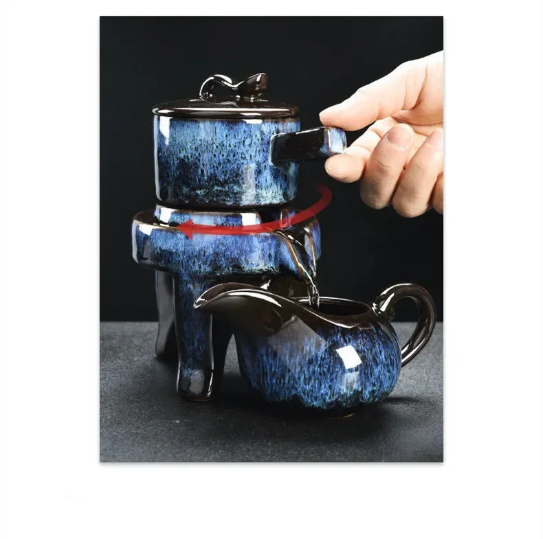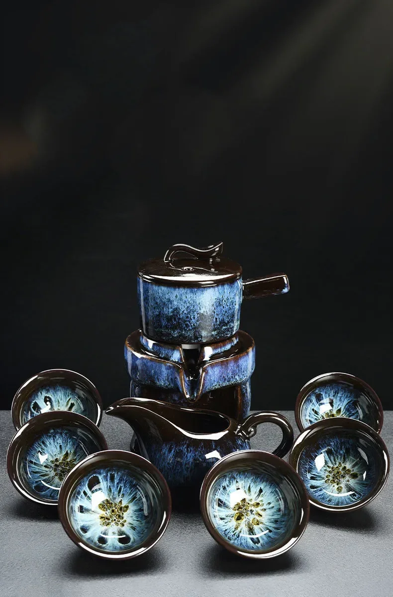 8 Pcs Set Semi Automatic Tea Sets Chinese Ceramic Purple Clay Tea Set Tea Cup