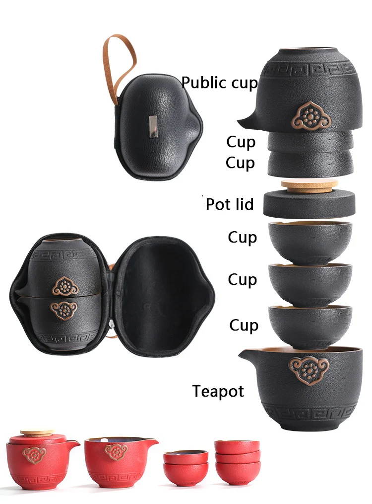 Ceramic Portable Teapot Porcelain Teaset Gaiwan Tea Cups of Tea Ceremony Tea Tra
