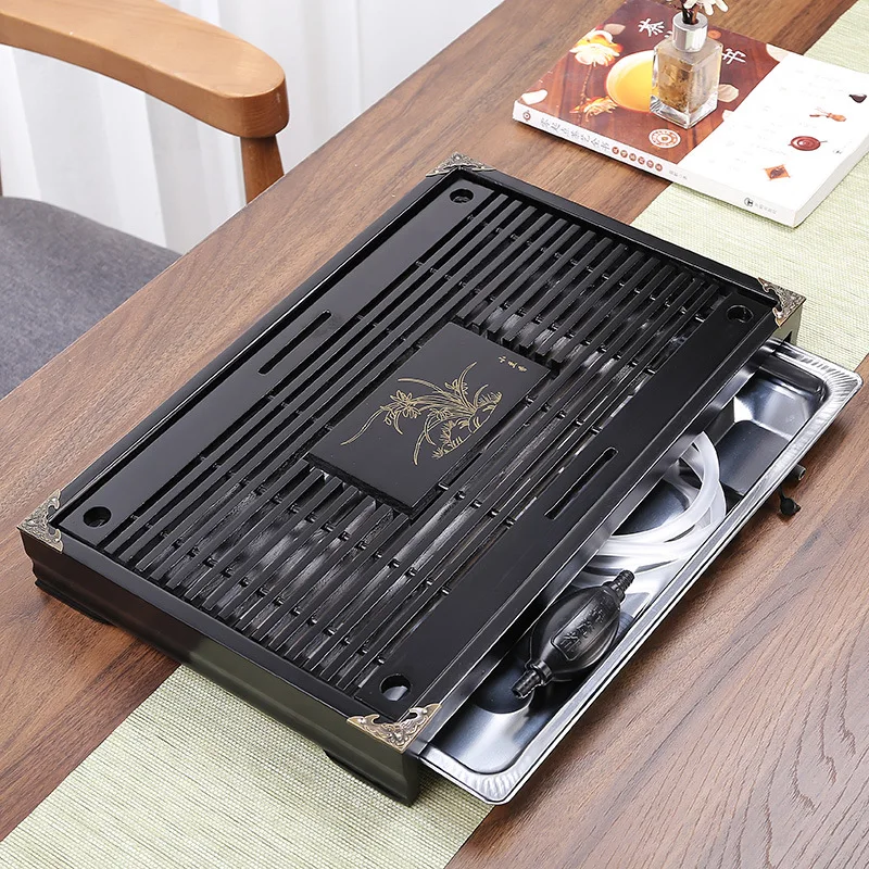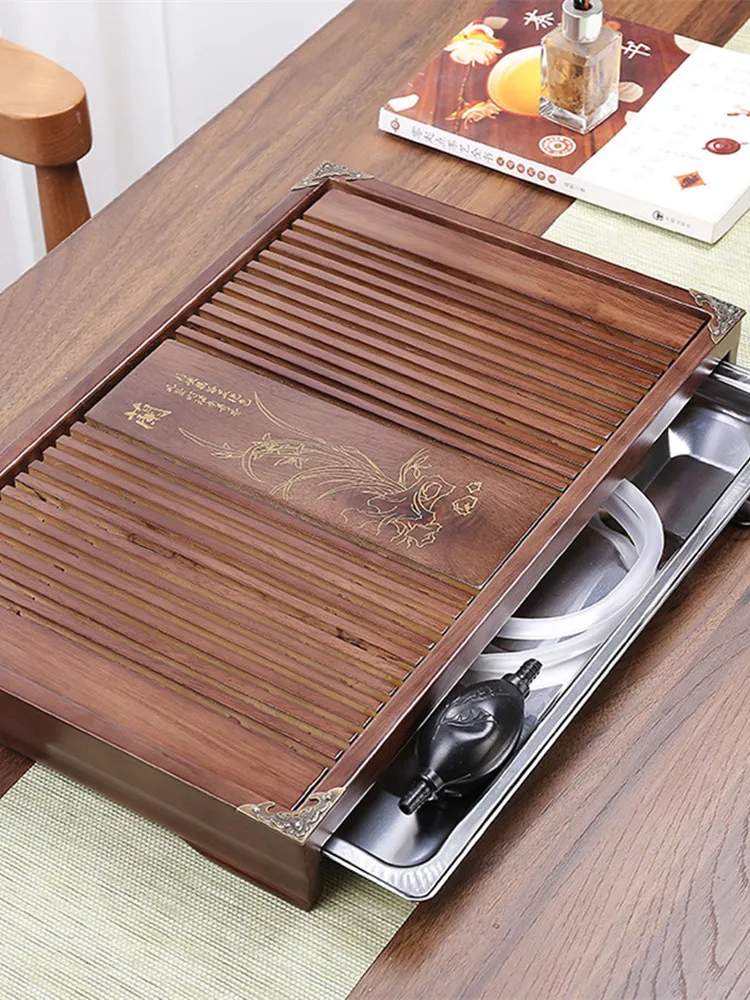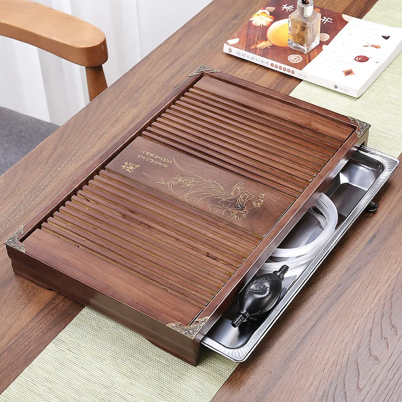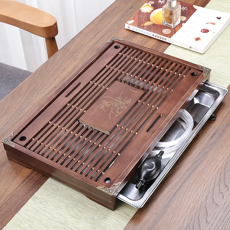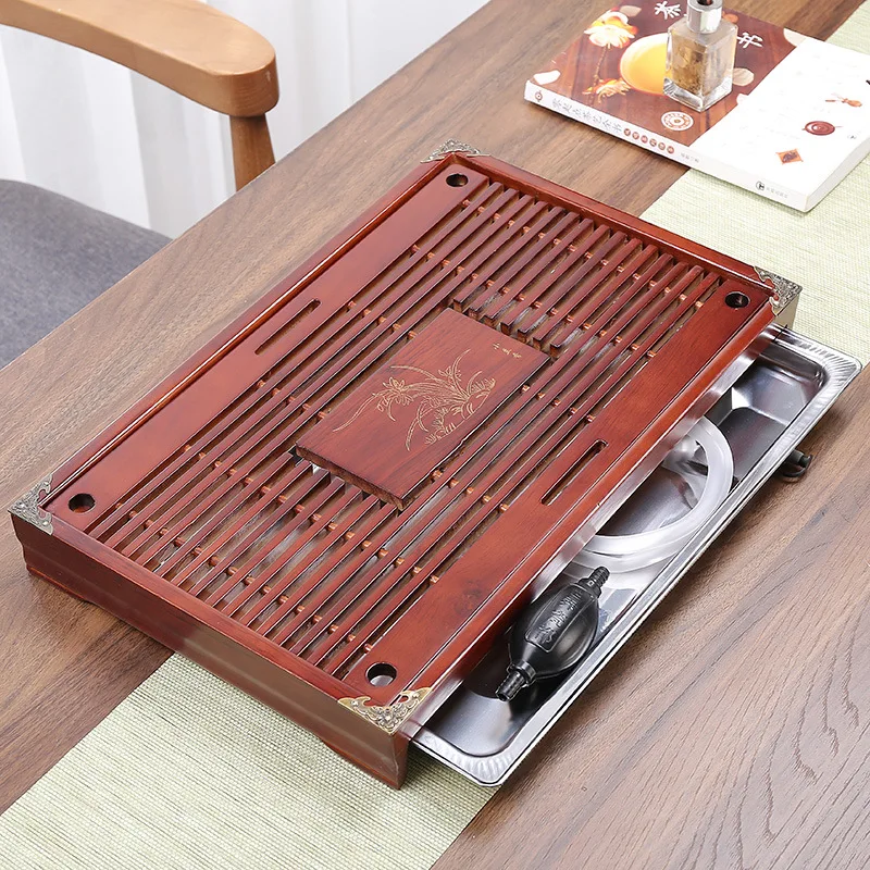 Chinese Kongfu Tea Wooden Tea Tray Set Steel Tray Kungfu Tea Learner Set