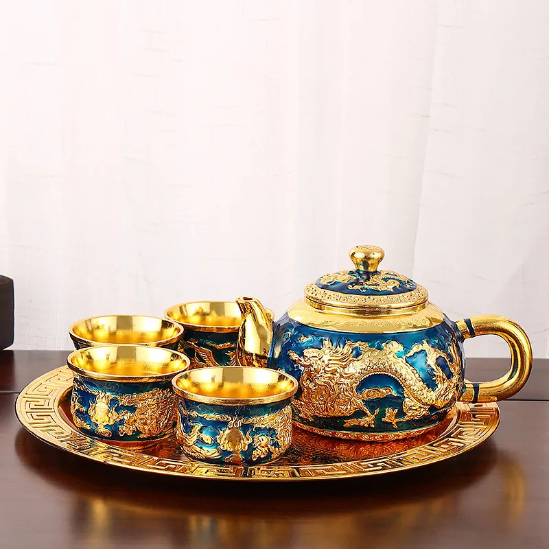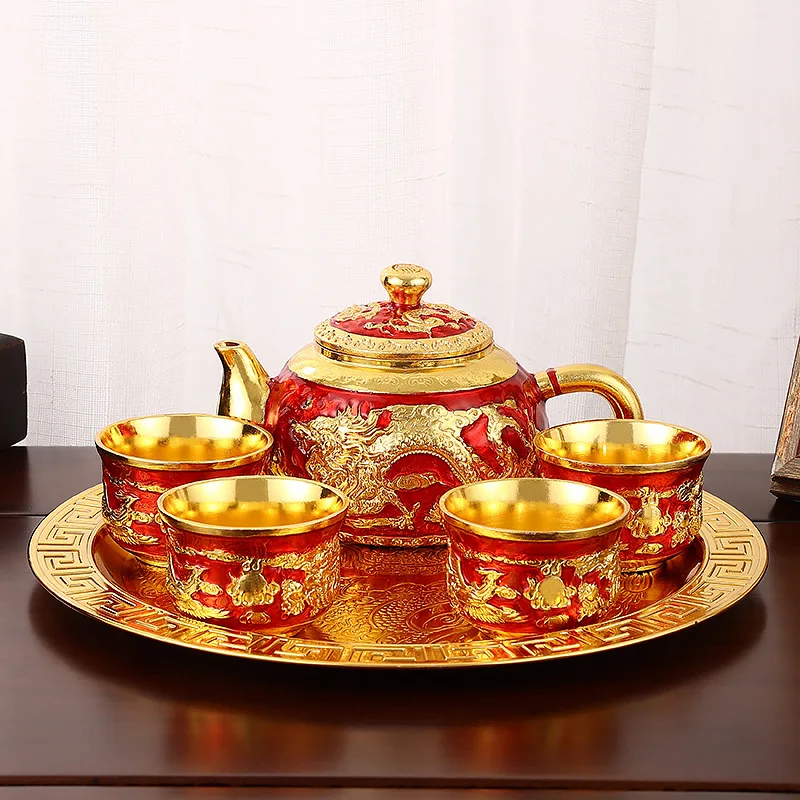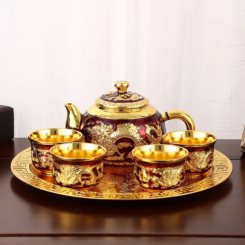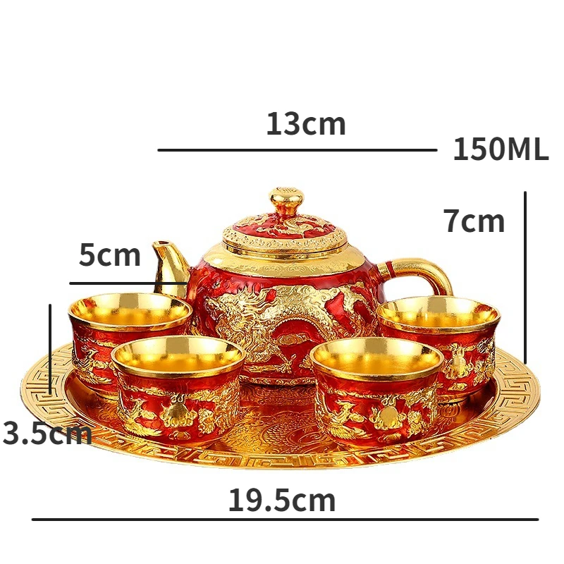 Chinese Tea Set Home Retro Zinc Alloy Chinese Dragon Teapot Teacup Tray Creative