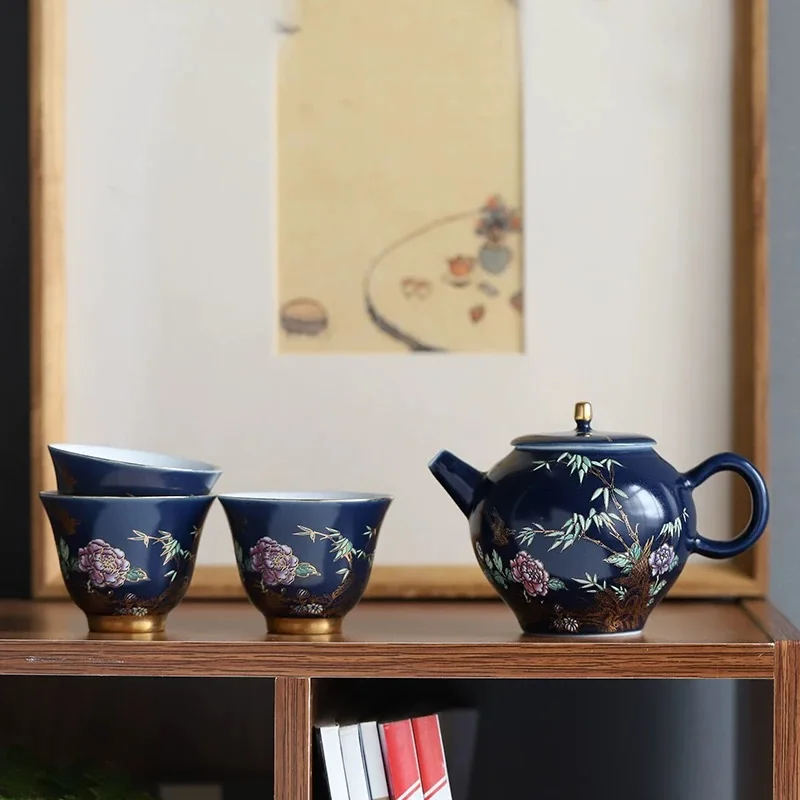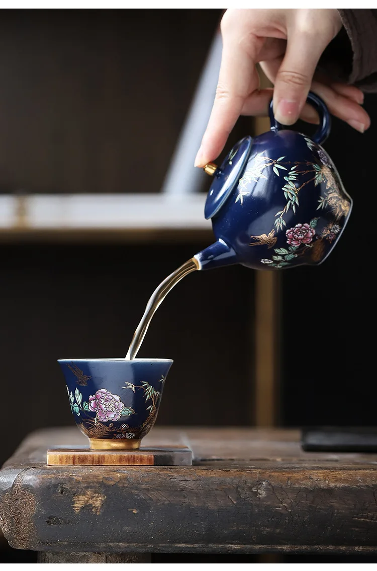Gold magpie tea set home tea cup creative personalized kung fu tea set ceramic brewing teapot