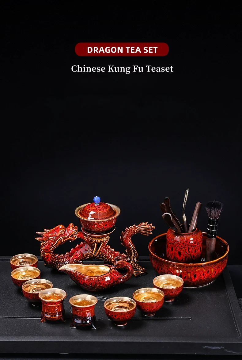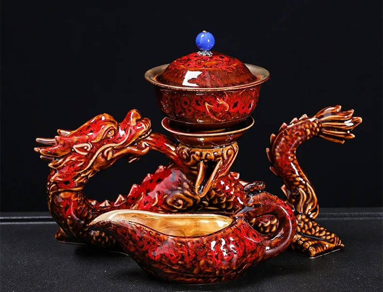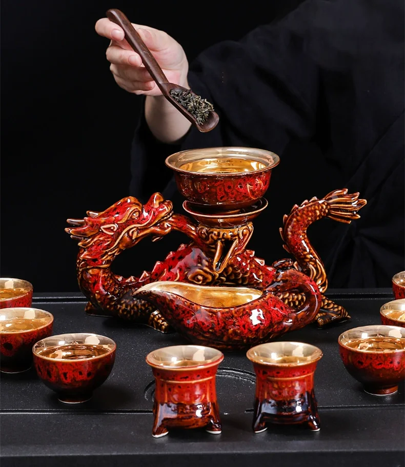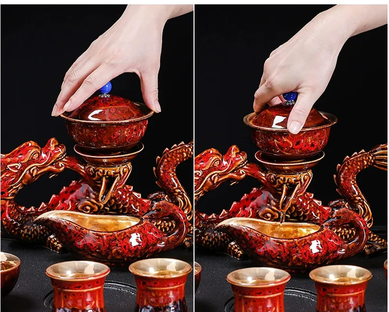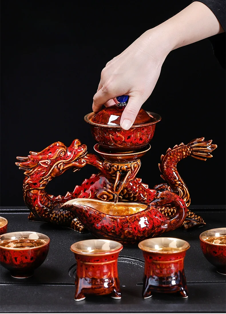 High-End Kung Fu Travel Teapot and Tea Cup Set, Automatic Tea Set, Chinese Drago
