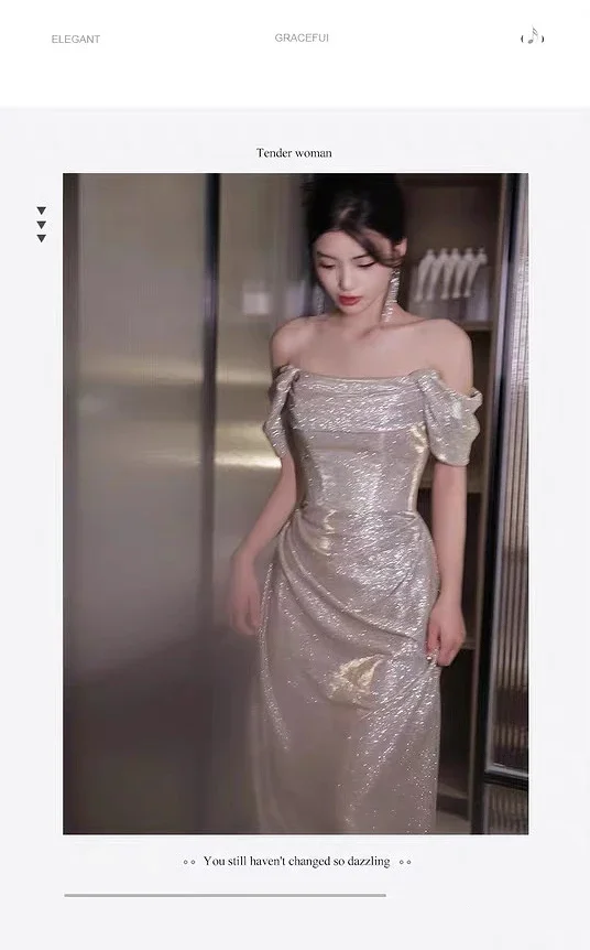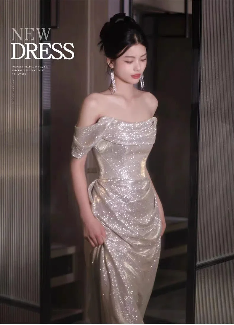 Luxury Ruched Mermaid Sleeveless Sexy Sequins Evening Dress Banquet Light Fishta