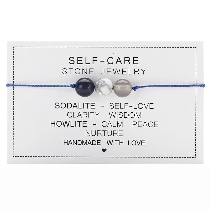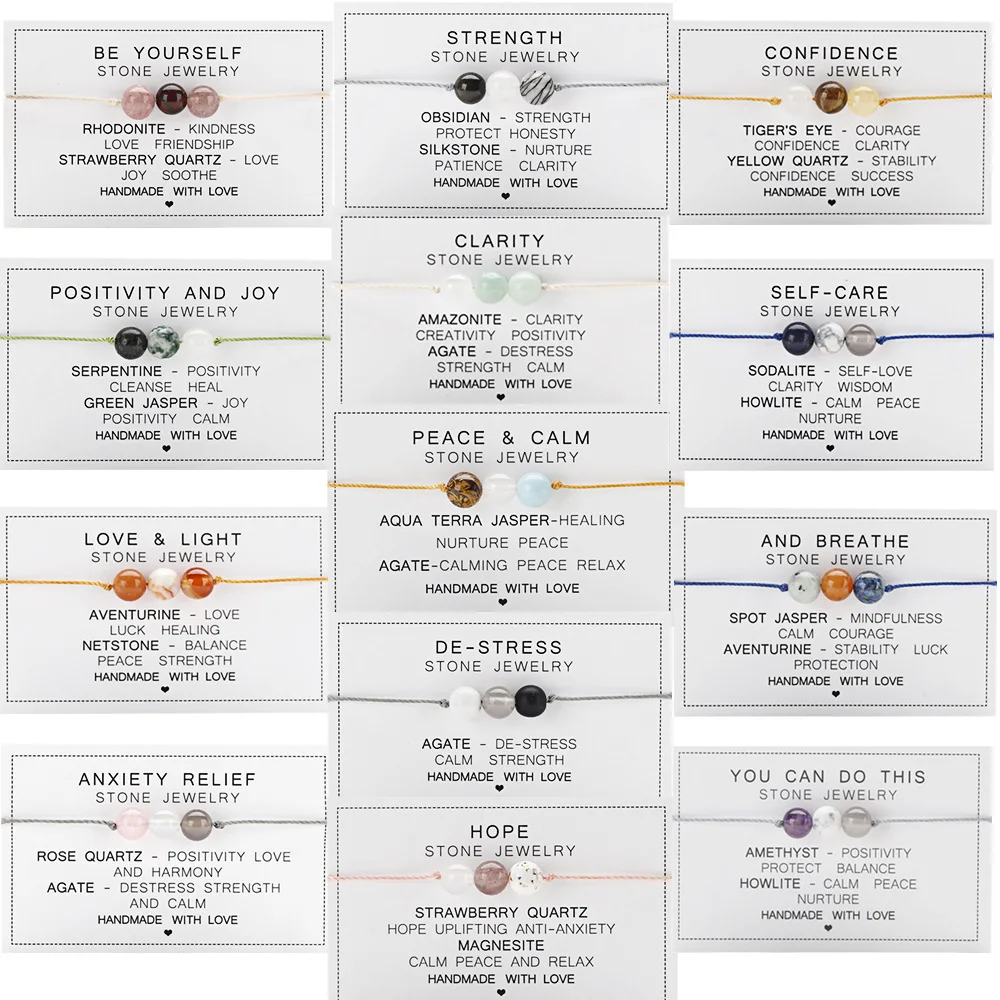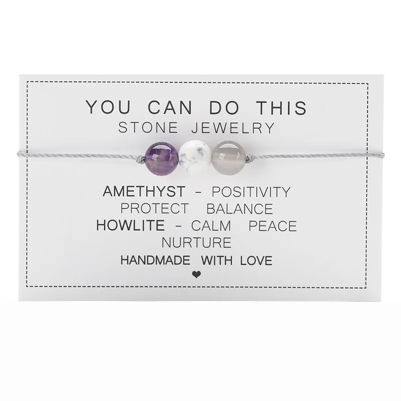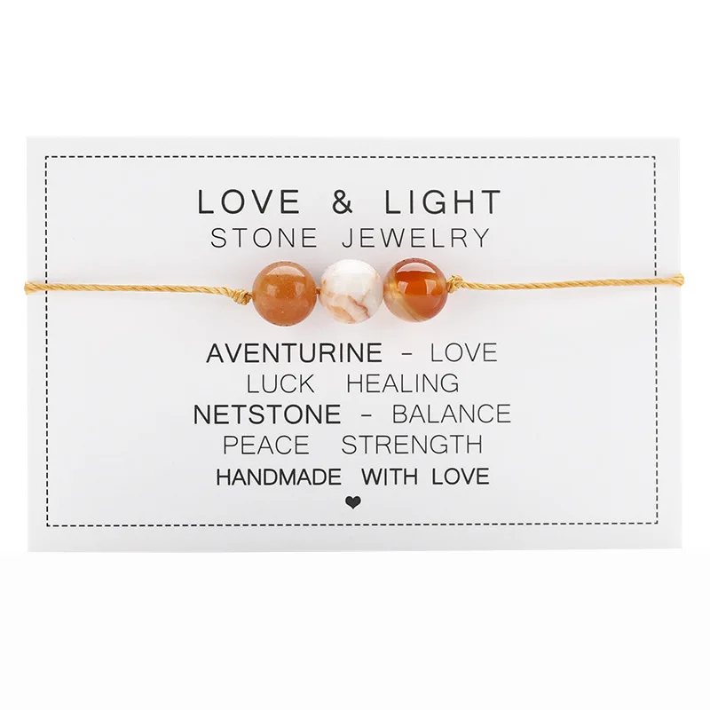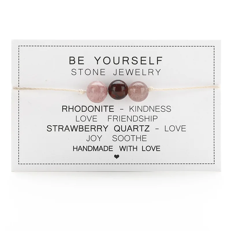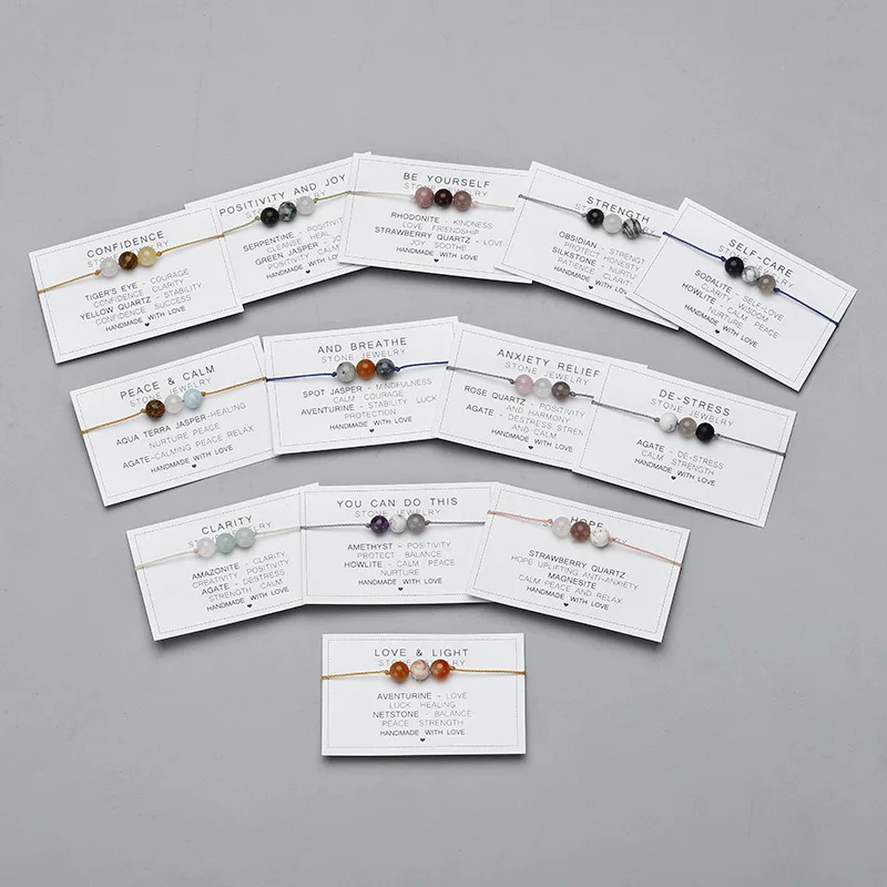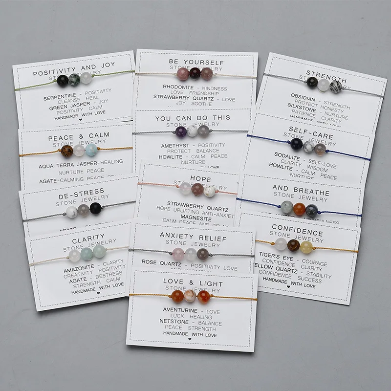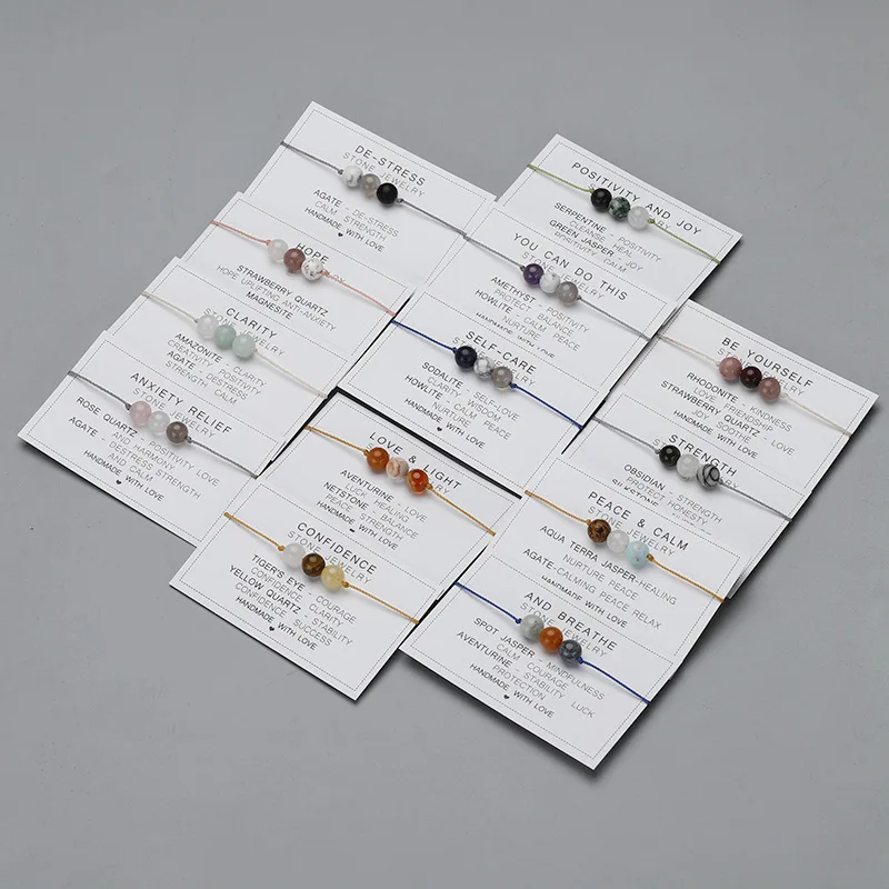 Natural Stone String Rope Bracelet Crystal Beads Bracelets With Paper Card For W