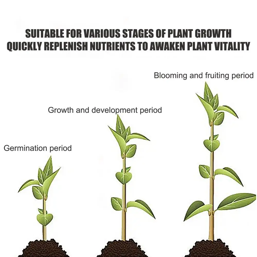 4.Wide Range of Uses: This plant nutrient solution is suitable for all stages of plant growth, from seedling to flowering. It replenishes nutrients to awaken plant growth.