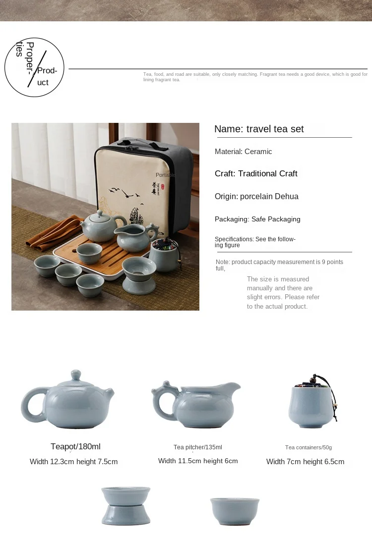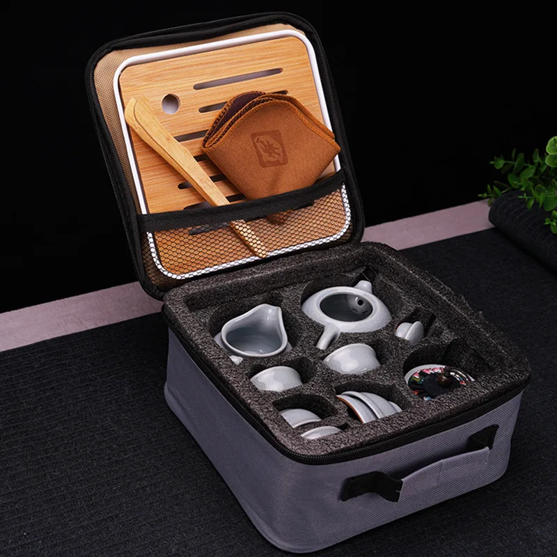 Portable Travel Ceramic Chinese Kung Fu Tea Set Tea Tray Full Set of Storage Pac