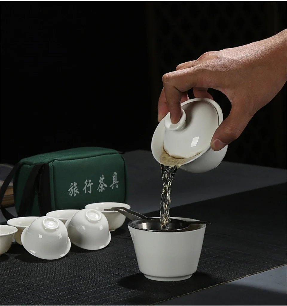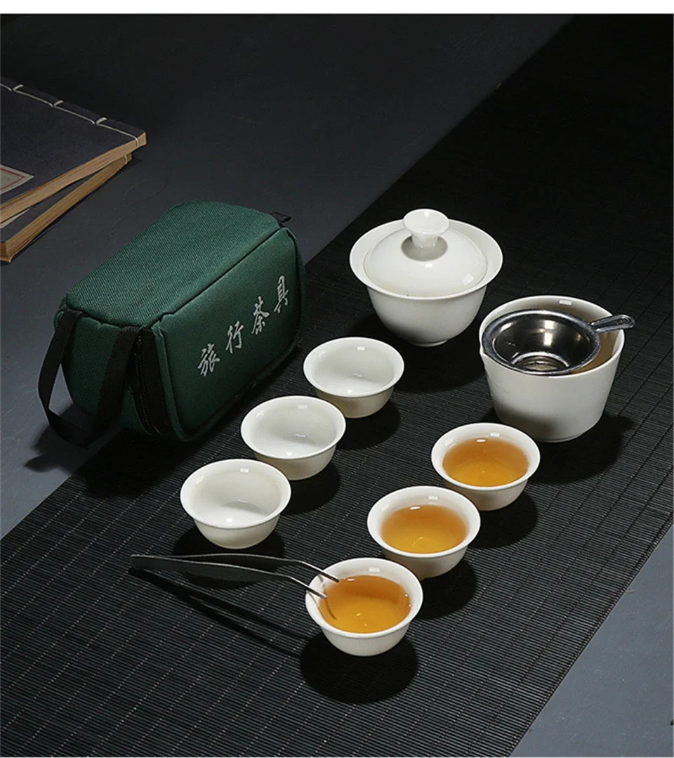11pcs Set Chinese Travel Kung Fu Tea Set Ceramic Portable Teacup