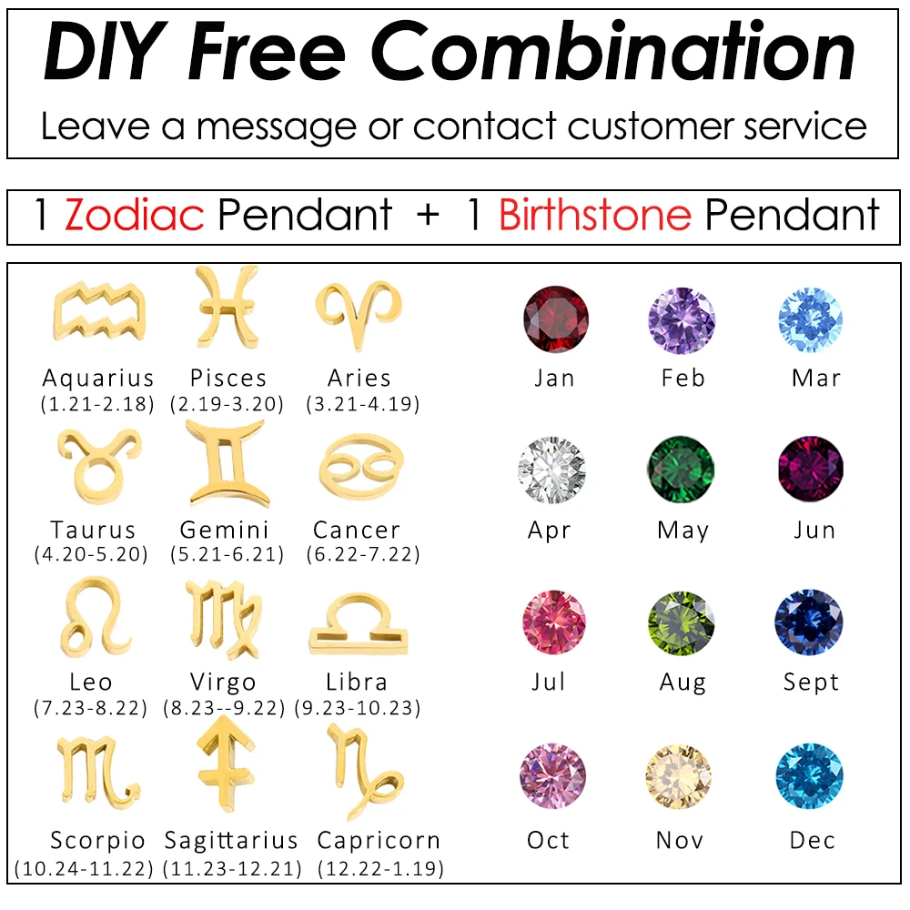 Kind Tips:This is a DIY style necklace, you will receive a necklace and two pendants, you can assemble the necklace by hand. If you need us to help you assemble it, please purchase the handmade link below and contact customer service promptly.SUNIBI Stainless Steel Birthstone Zodiac Double Pendant Necklace for Woman12 Constellation Birthday Gift DIY Jewelry Wholesale