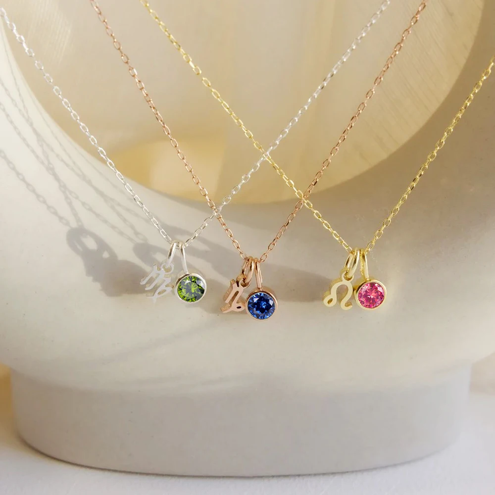 SUNIBI Stainless Steel Birthstone Zodiac Double Pendant Necklace for Woman12 Con